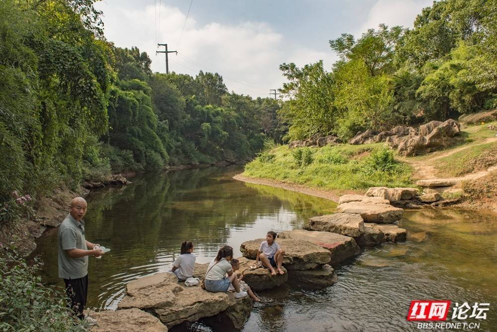 在愚溪河上,阳光、石墩和笑声都慢了下来。(图源:红网论坛@花滩河边)
